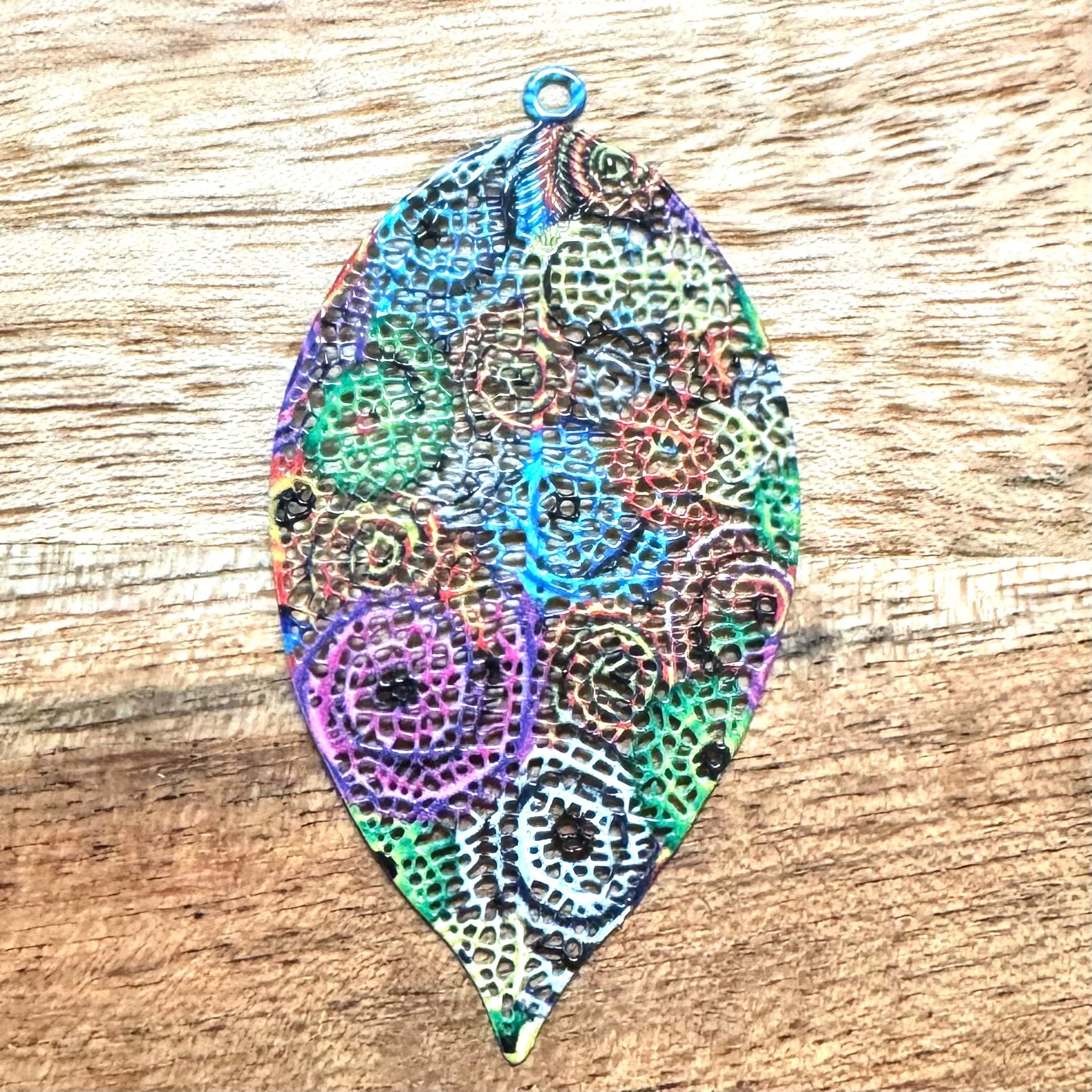 BCB-2055 - Lightweight Brass Leaf Pendant, Multi, 30x54mm | Pkg 1