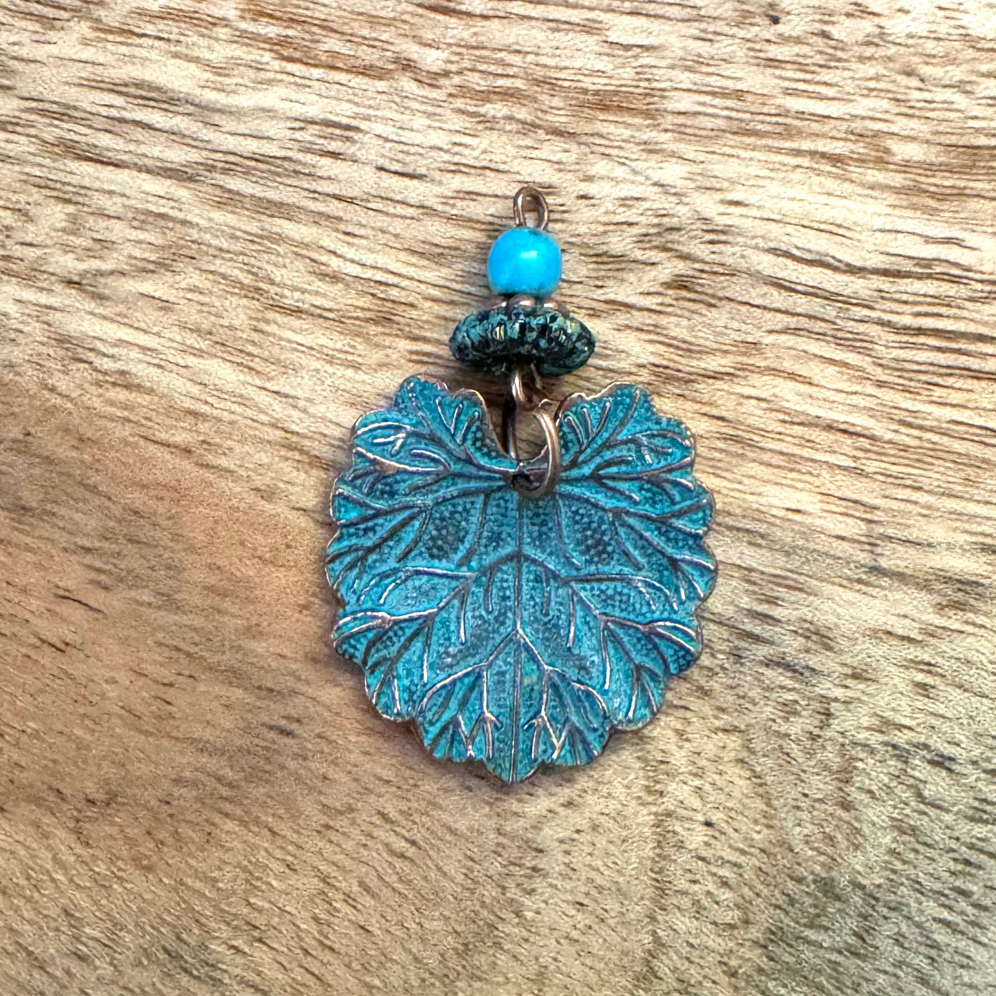 BCB-2064 - Antique Copper Patina Leaf Pendant With Topper, 28x42mm | Pkg 1