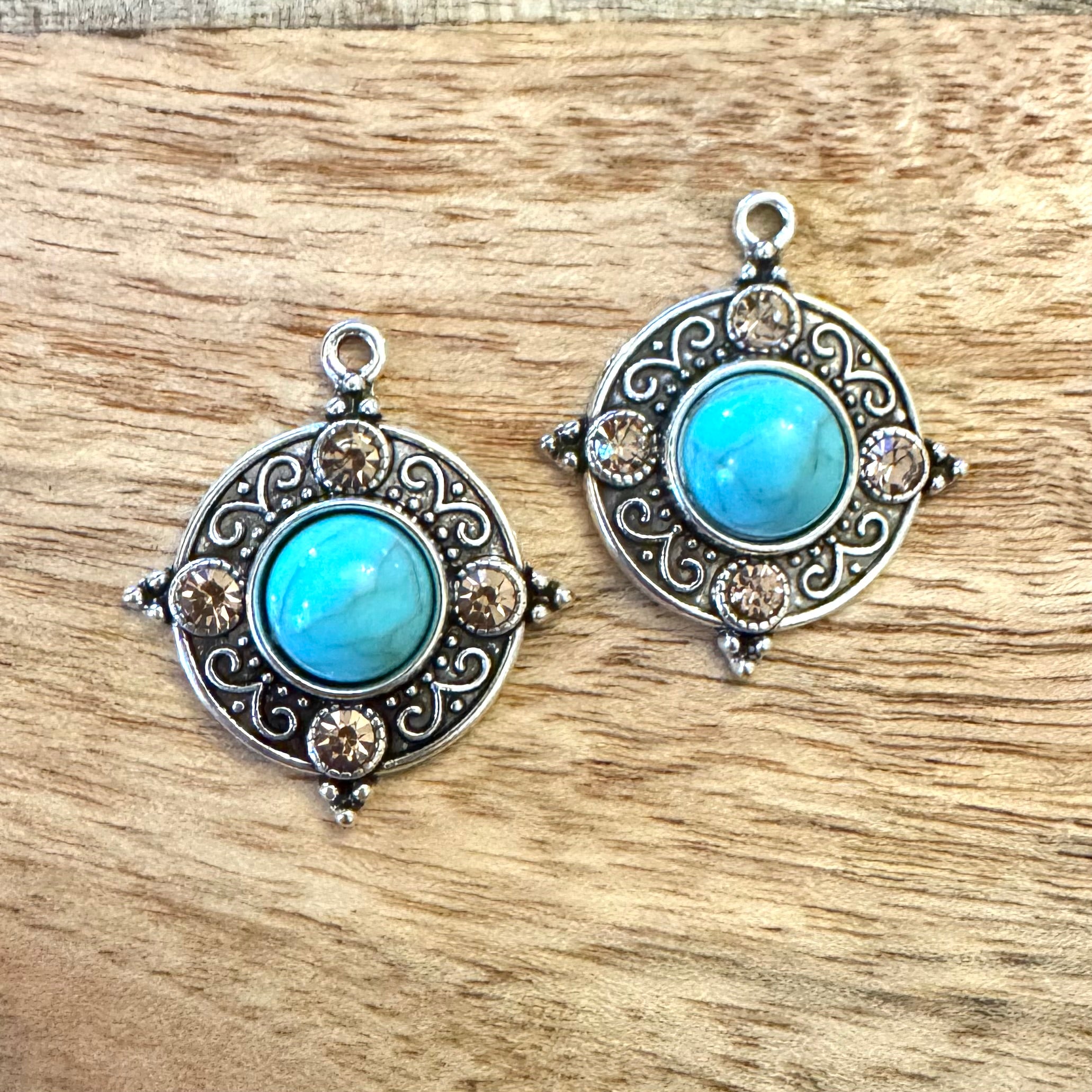 BCB-1771 - Antique Silver Bali Style Howlite Disc With Crystals, 27x31mm | Pkg 2