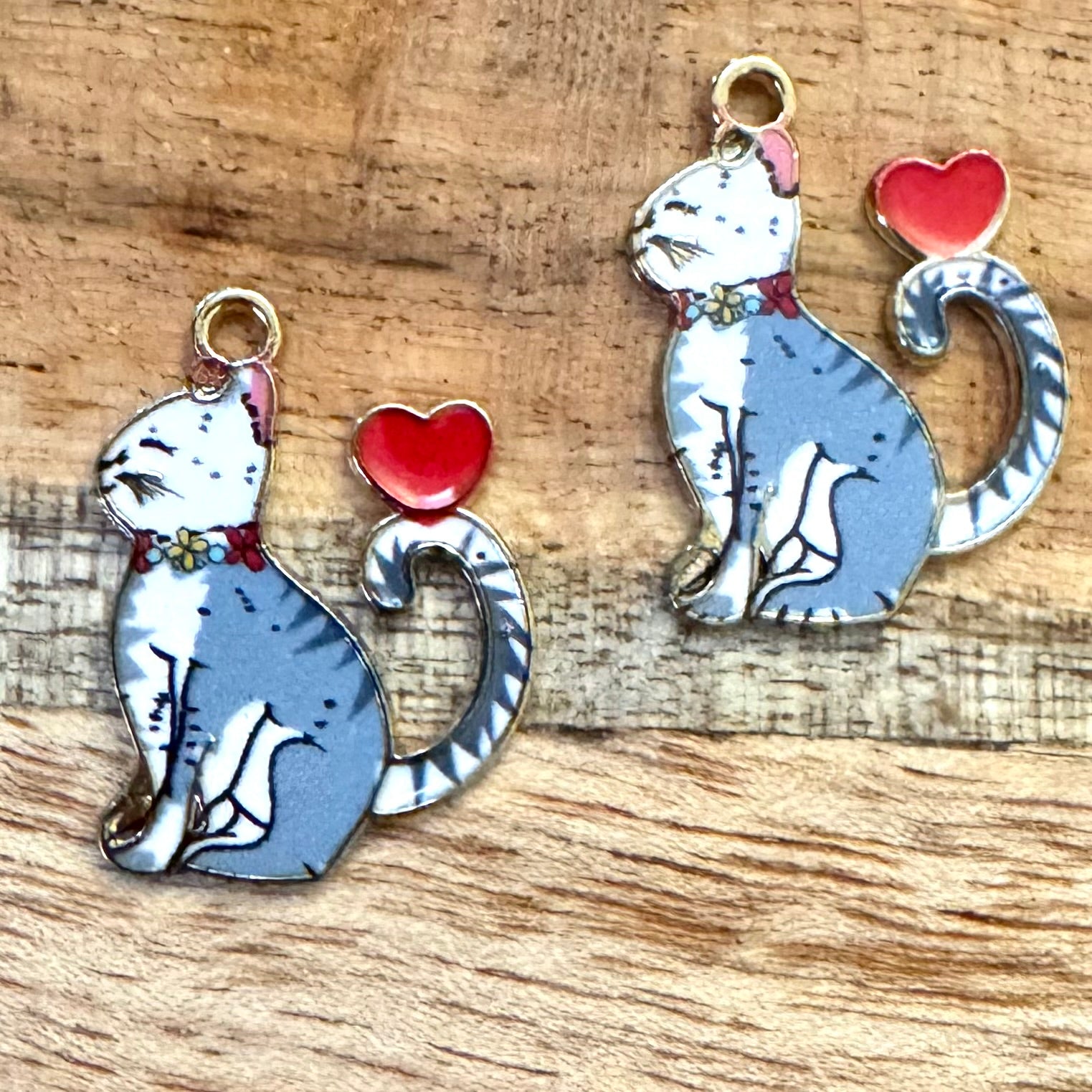 BCB-1777 - Antique Silver Cat Outline Pendant With Heart, Gray, 18x24mm | Pkg 2