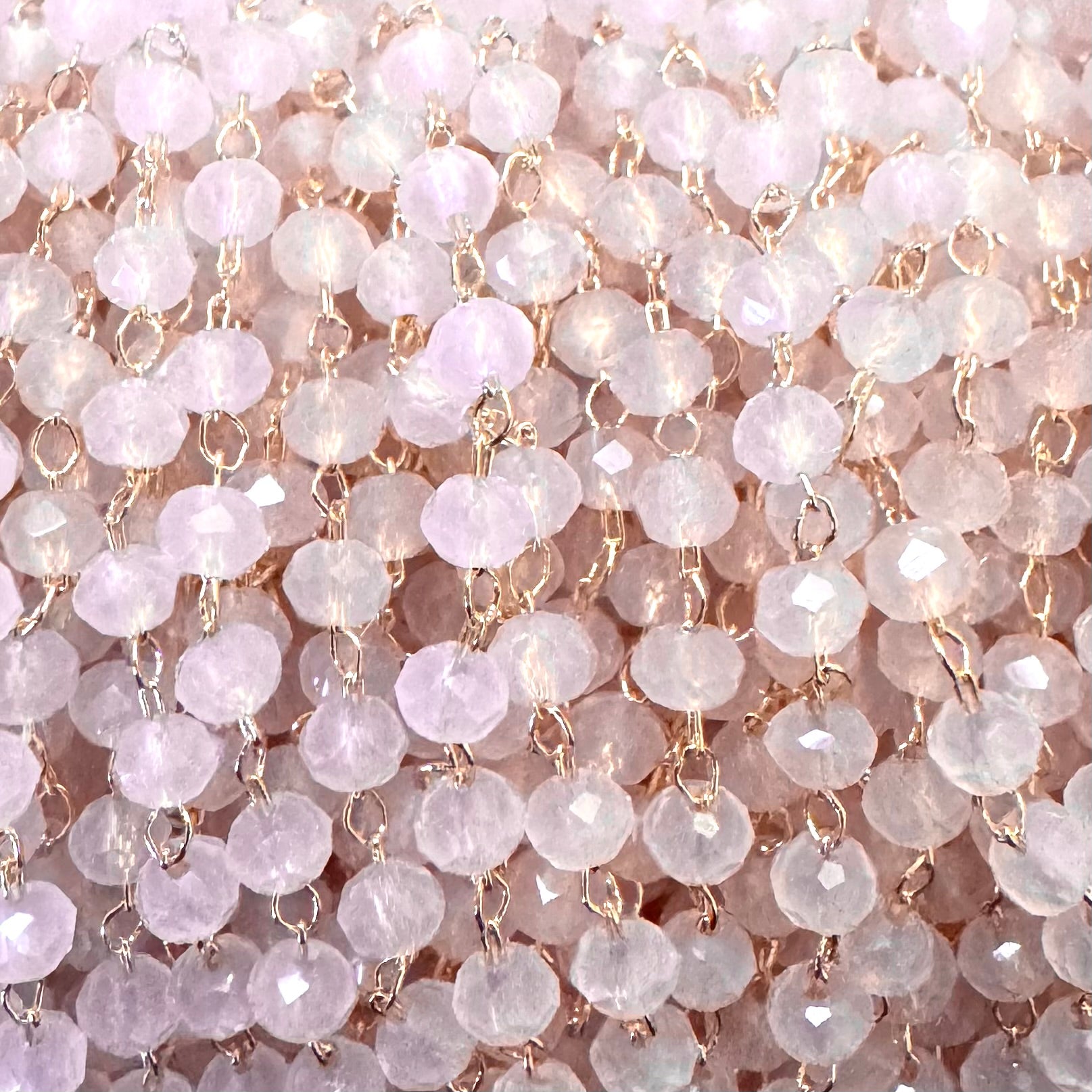 BCB-1802 - Gold Tone Stainless Steel Chain, Rose Opal, 3mm Faceted Beads | Pkg 3 Ft.