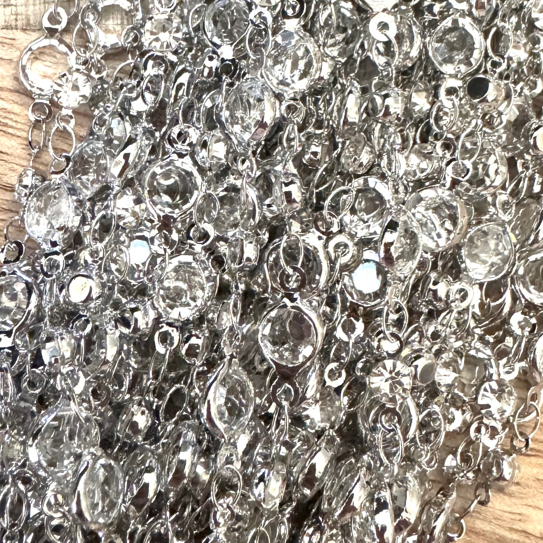 BCB-1809 - Antique Silver Pewter Glass Chain, Crystal, 3/6mm | Pkg 3 Ft