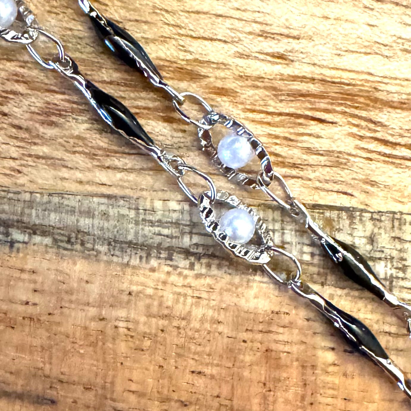 BCB-1853 - Silver Plated Brass Chain With Glass And Synthetic Pearls | Pkg 3 Ft