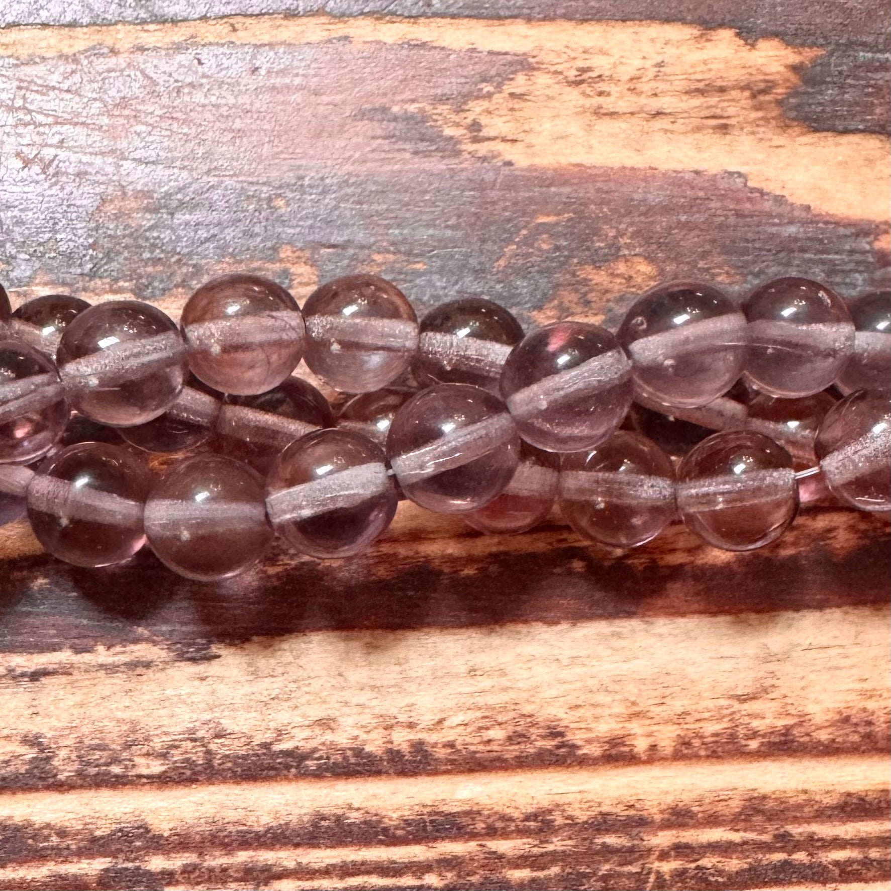JKB-0768 - Czech Glass Round Beads, Amethyst, 8mm | Strand