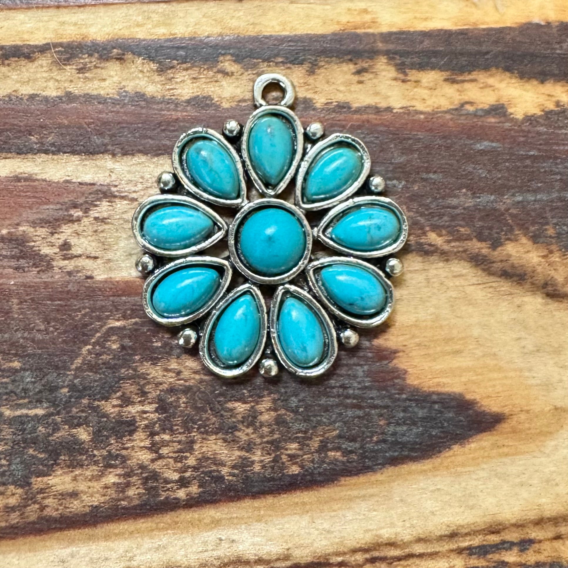 ABA-1154 - Antique Silver Turquoise Howlite Flower Pendant, 25mm | Pkg 1