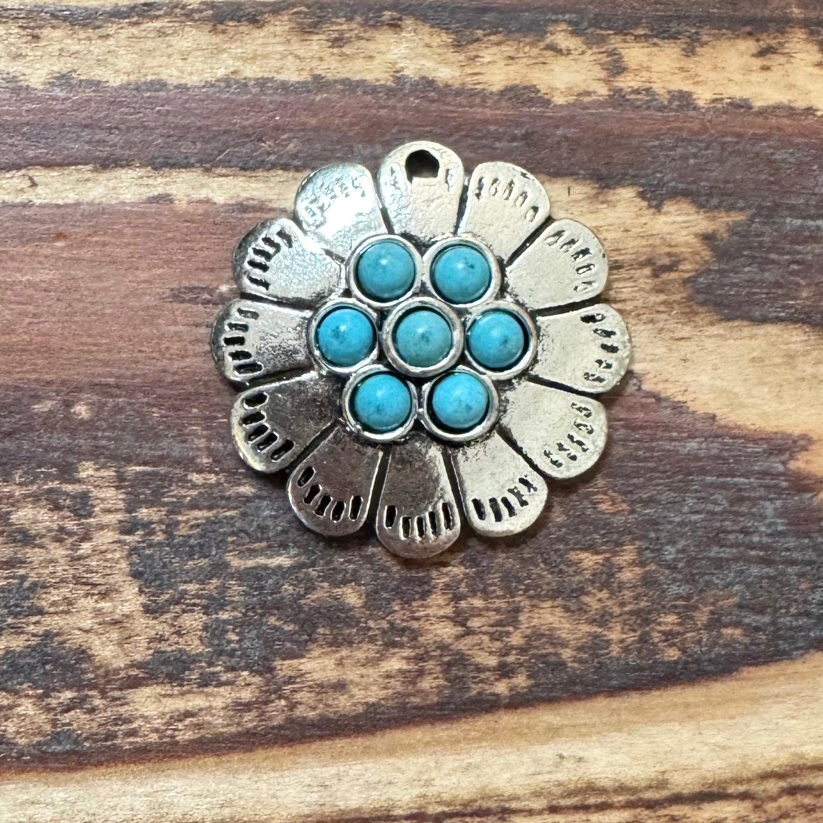 ABA-1155 - Antique Silver Turquoise Flower Pendant With Howlite Center, 25mm | Pkg 1