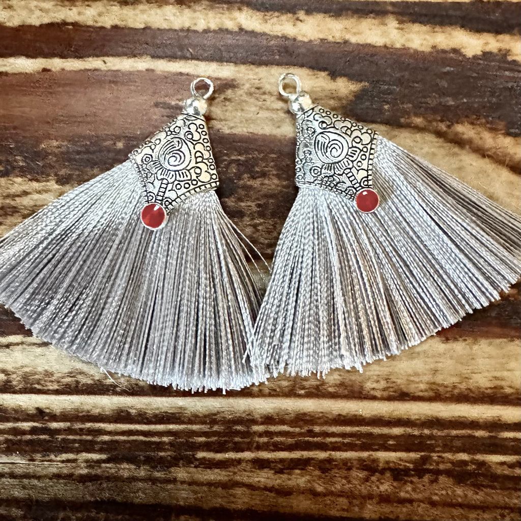 BCB-1578 - Bohemian Style Tassel Earring Findings, Silver, 45mm | Pkg 2