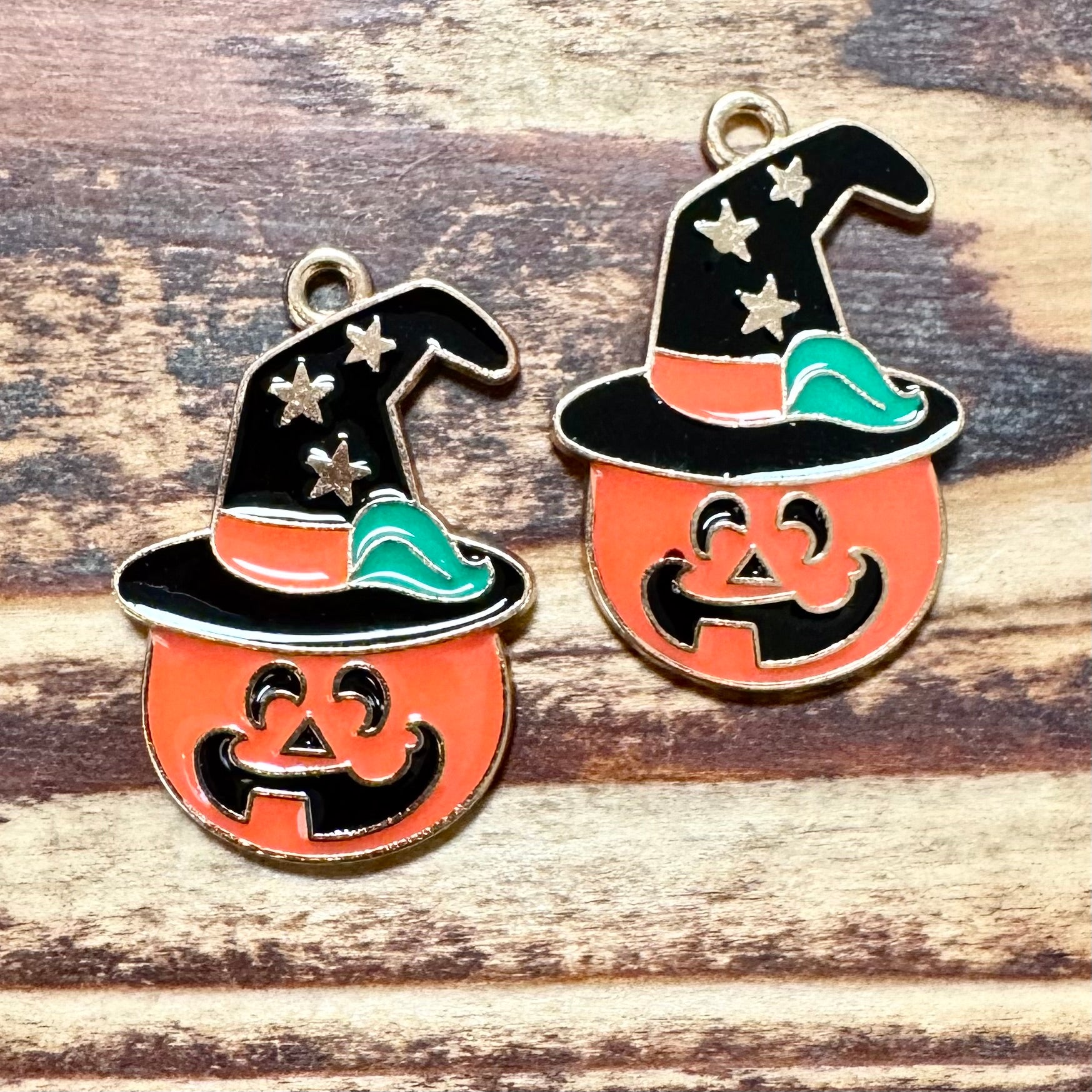BCB-1154 - Antique Gold Enamel Pendant, Jack O Lantern With Hat, 20x30mm | Pkg 2