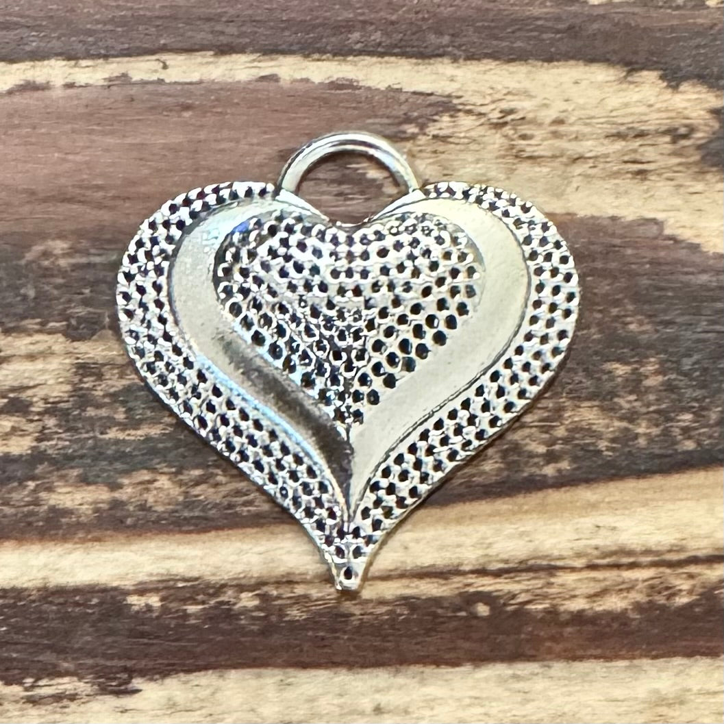 BCB-0927 - Antique Silver Heart Pendant, Dotted, 34mm | Pkg 1