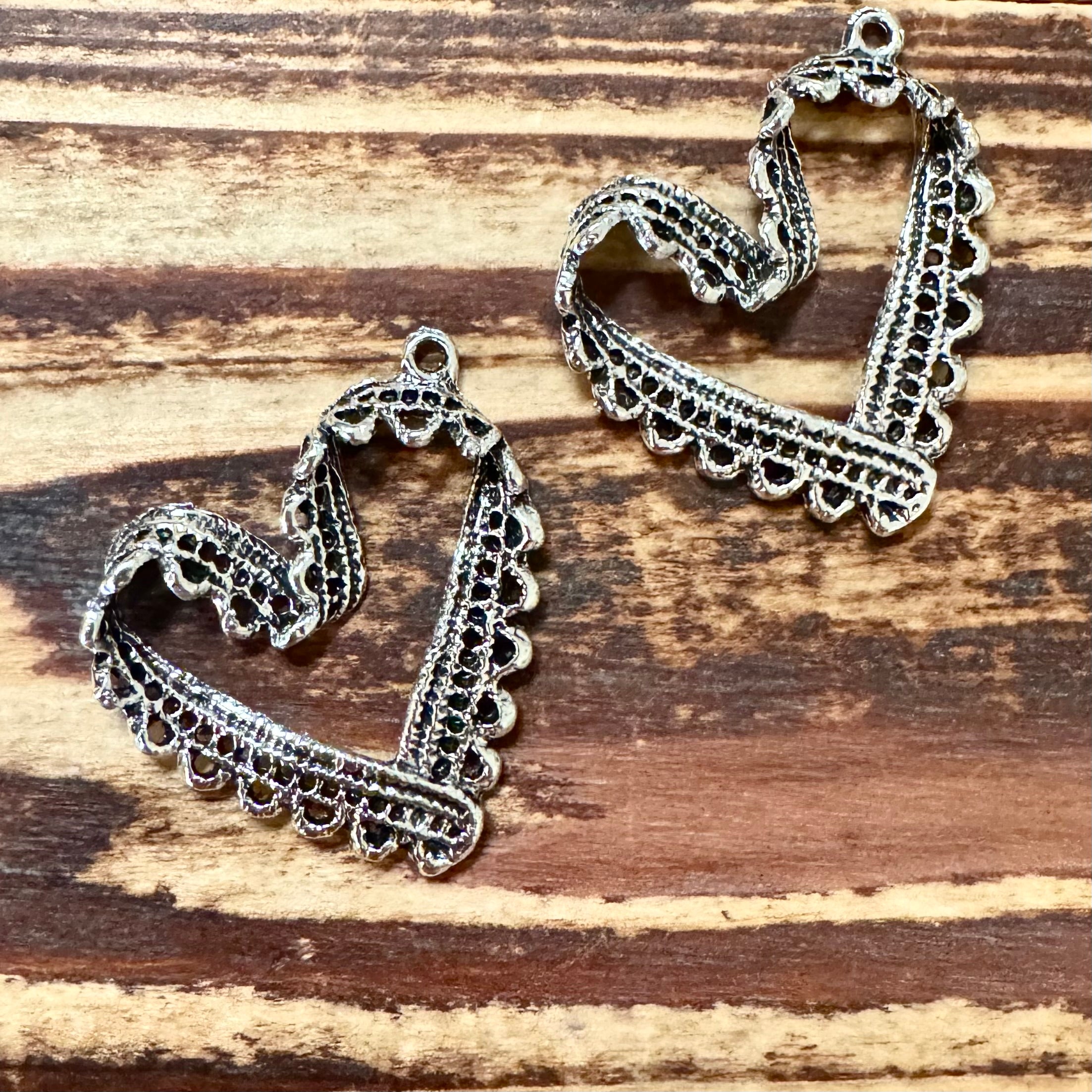BCB-1323 - Antique Silver Open Lacy Heart Pendant, 32mm | Pkg 2