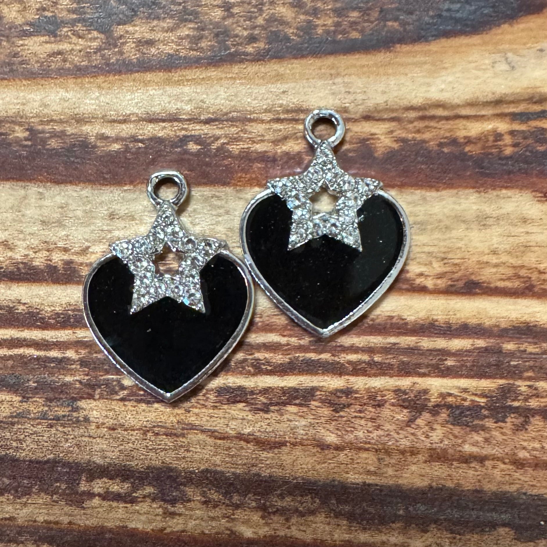 BCB-1379 - Silver Plated Enamel Heart Pendant With Rhinestone Star, 21x16mm | Pkg 2