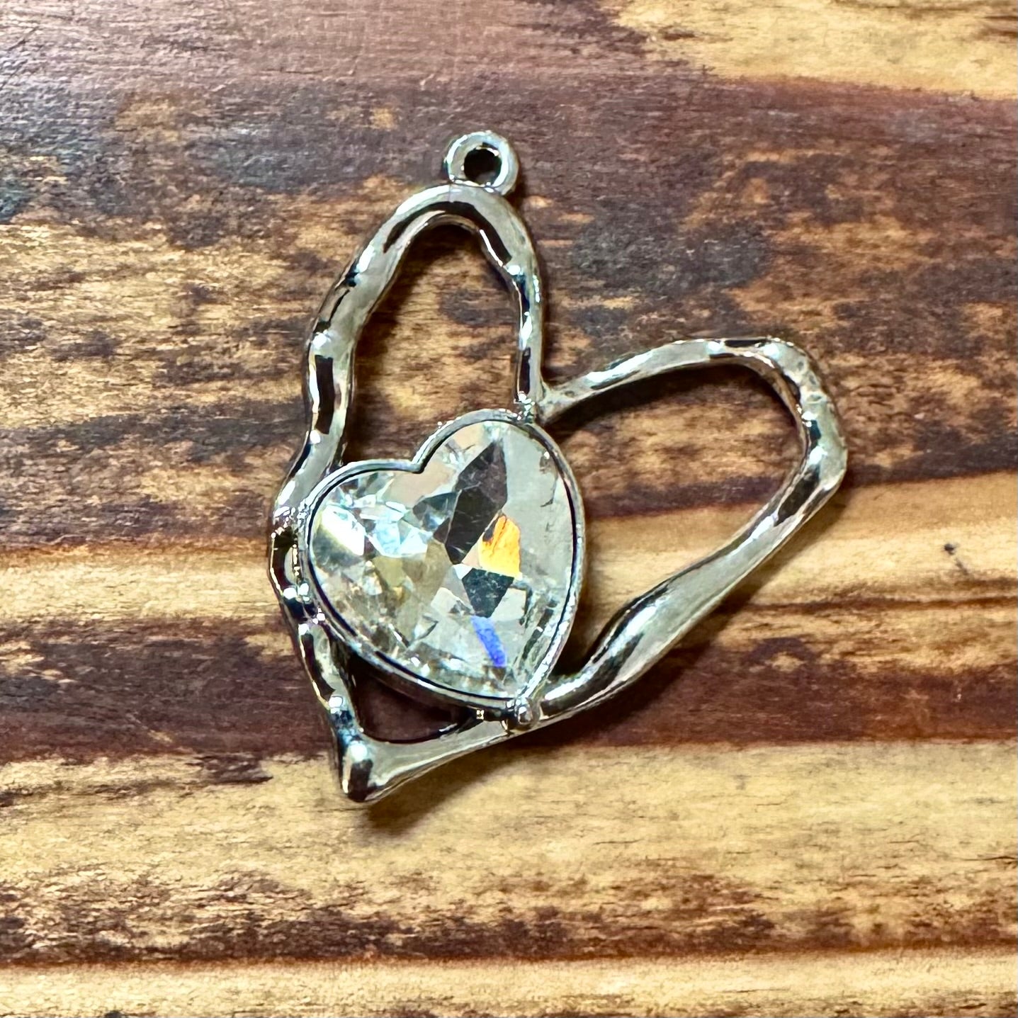 BCB-1496 - Antique Silver Hammered Open Heart Pendant With CZ Heart, 25x29mm | Pkg 1