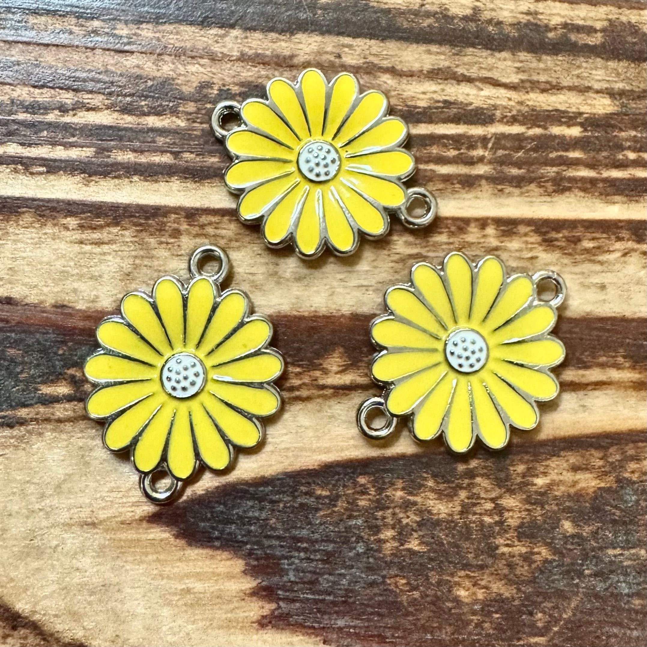 BCB-0990 - Antique Silver Yellow Poppy Flower Connector, 18x23mm | Pkg 3
