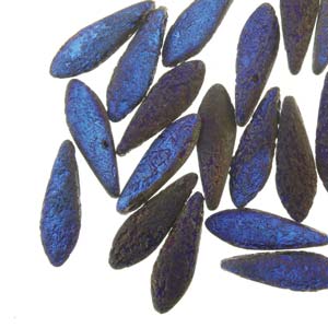 DGR51623980-22283 - Czech Glass Dagger Beads, Jet Full Azuro, 5x16mm | Strand