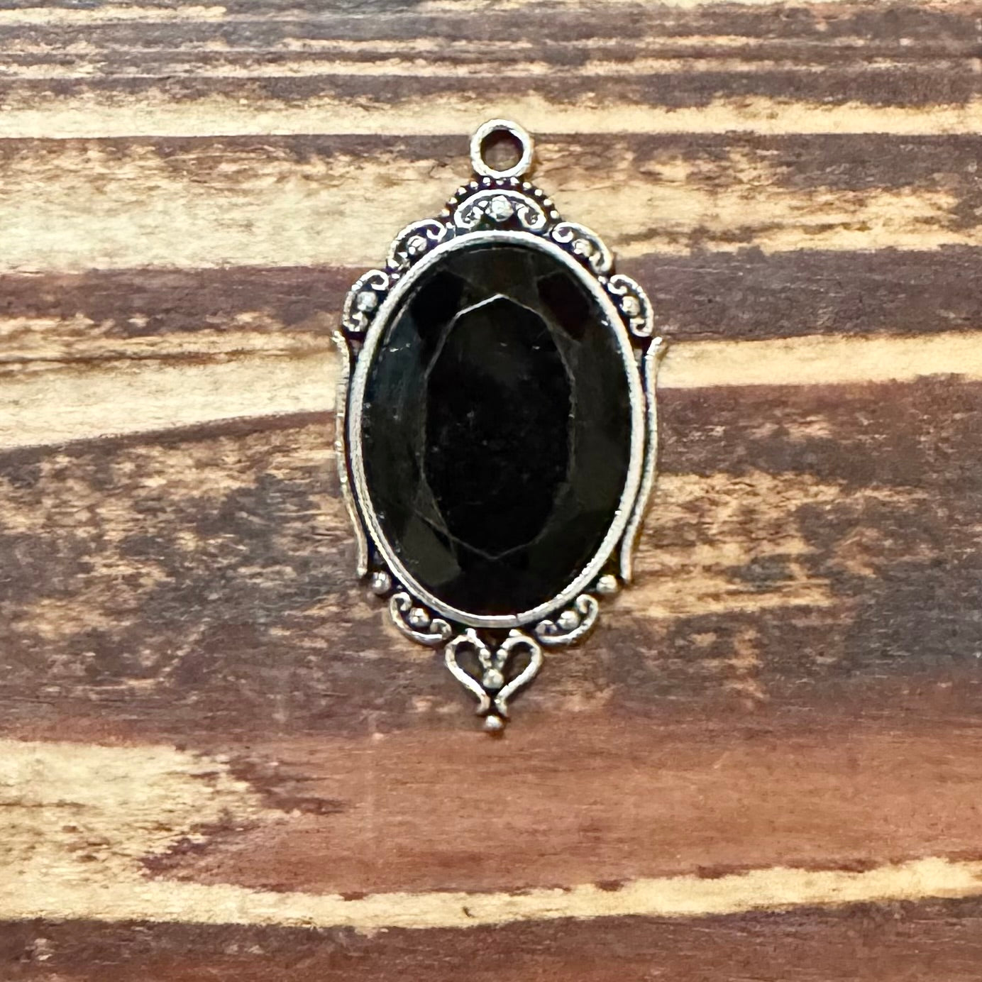 BCB-1234 - Antique Silver Victorian Pendant With Black Rhinestone, 43x24mm | Pkg 1