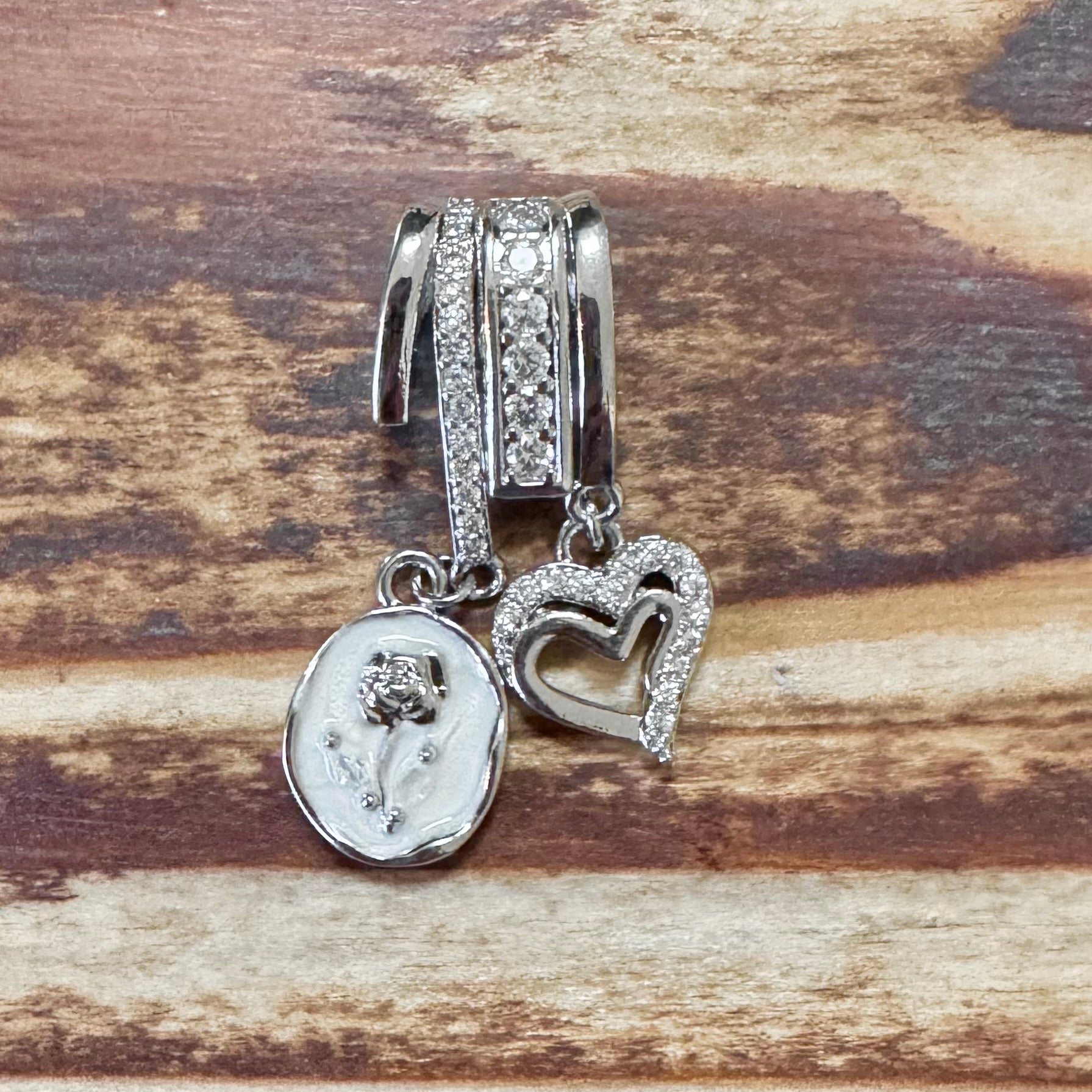 BCB-1572 - Silver Drop Pendant With Crystals, Flower And Heart, 32x15mm | Pkg 1