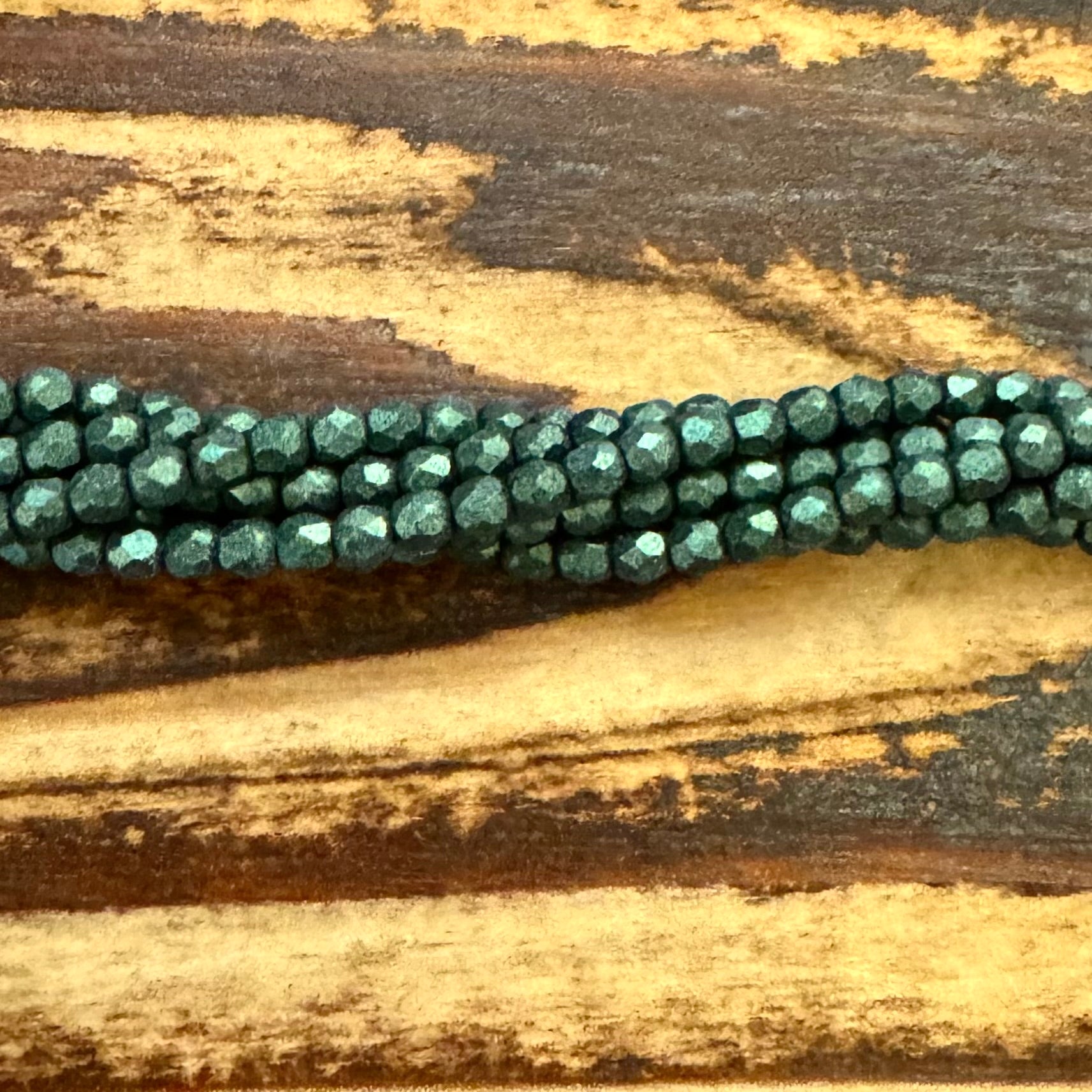 1-03-79051 - Czech Fire Polish Beads, Metallic Suede Lt. Green, 3mm | Strand