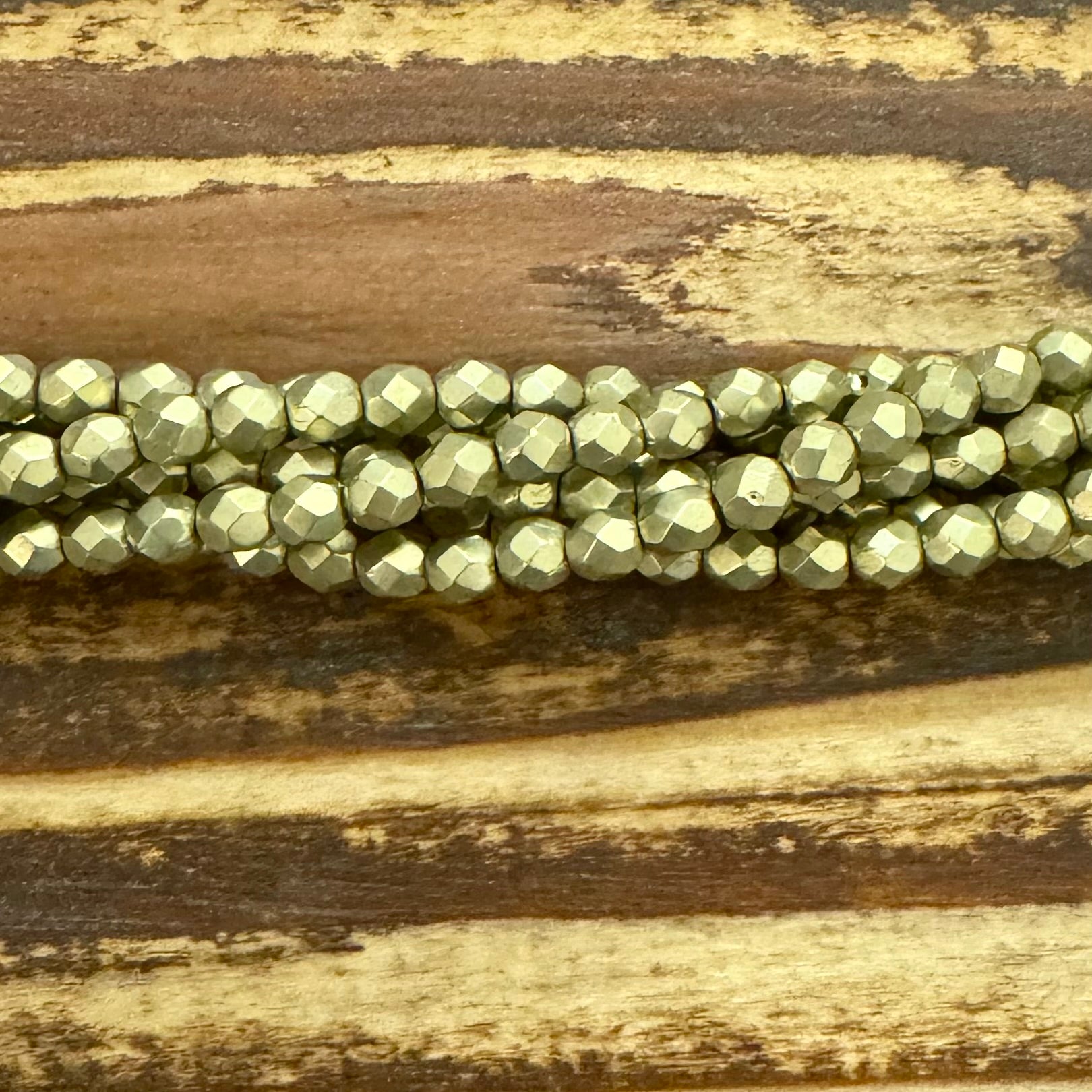 1-04-06B09 - Czech Fire Polish Beads, Saturated Metallic Limelight , 4mm | Strand