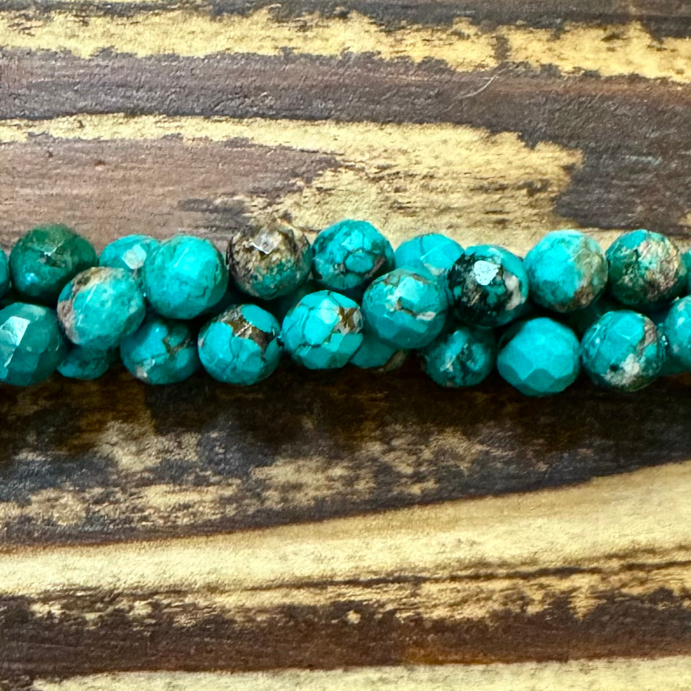 ABA-1112 - Magnesite Hand Cut Round Gemstone Beads, Green Turquoise, 6mm | Strand