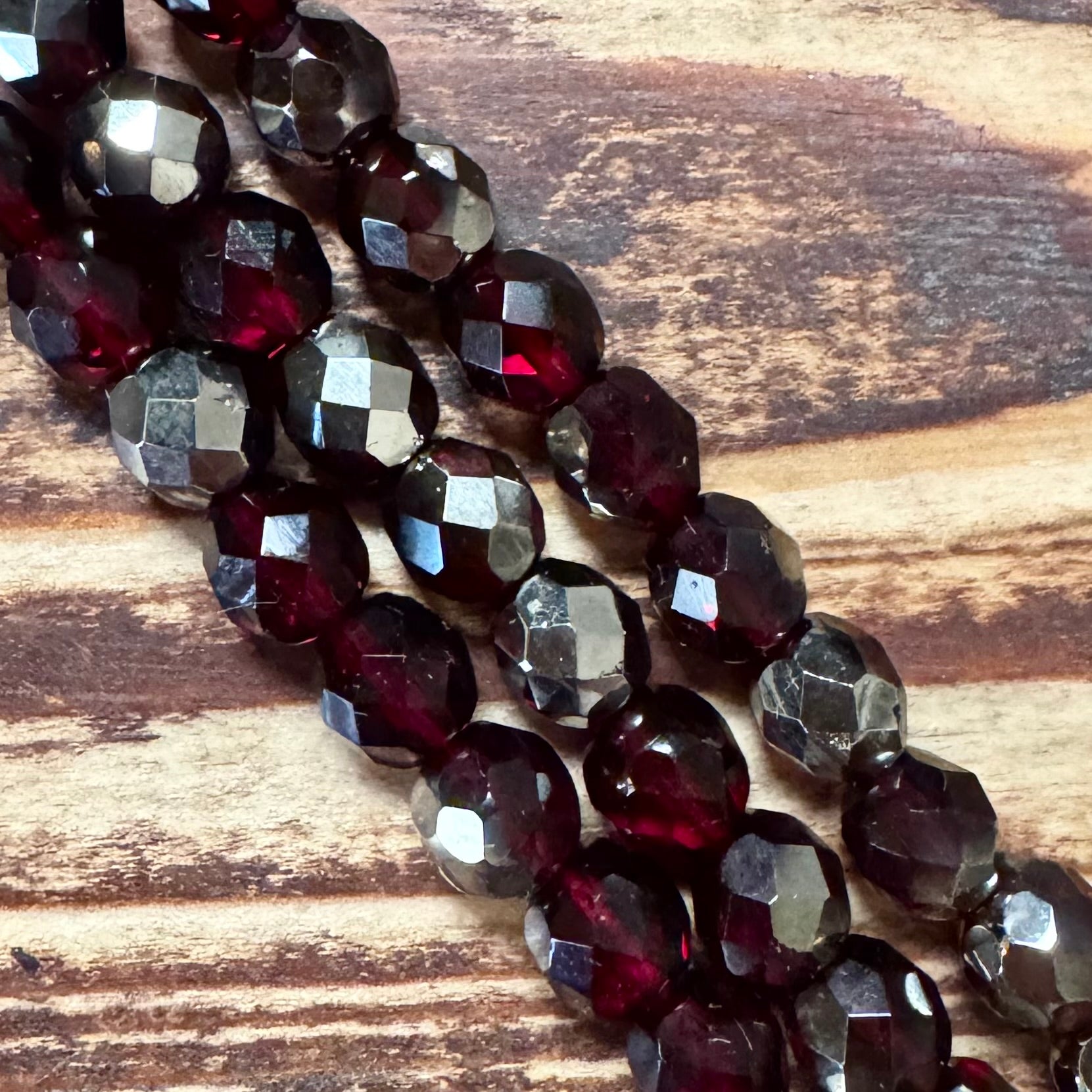 JKB-1073 - Czech Glass Fire Polish Beads, Garnet/Silver, 8mm | Strand