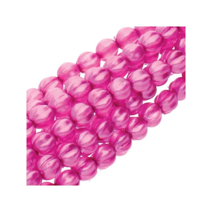 PRLM06-70495C - Melon Czech Glass Pearls, 6mm, Crystal Hot Pink | 1 Strand